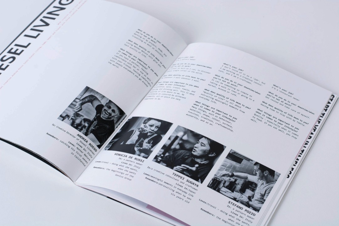 The Diesel Brochure is an editorial design project that explores the essence of Diesel’s brand identity through a focus on diversity, gender, and creative expression. Featuring a curated selection of content from Diesel Living to interviews with designers and models, this passion project reflects Diesel's bold and innovative approach to fashion, lifestyle, and culture.